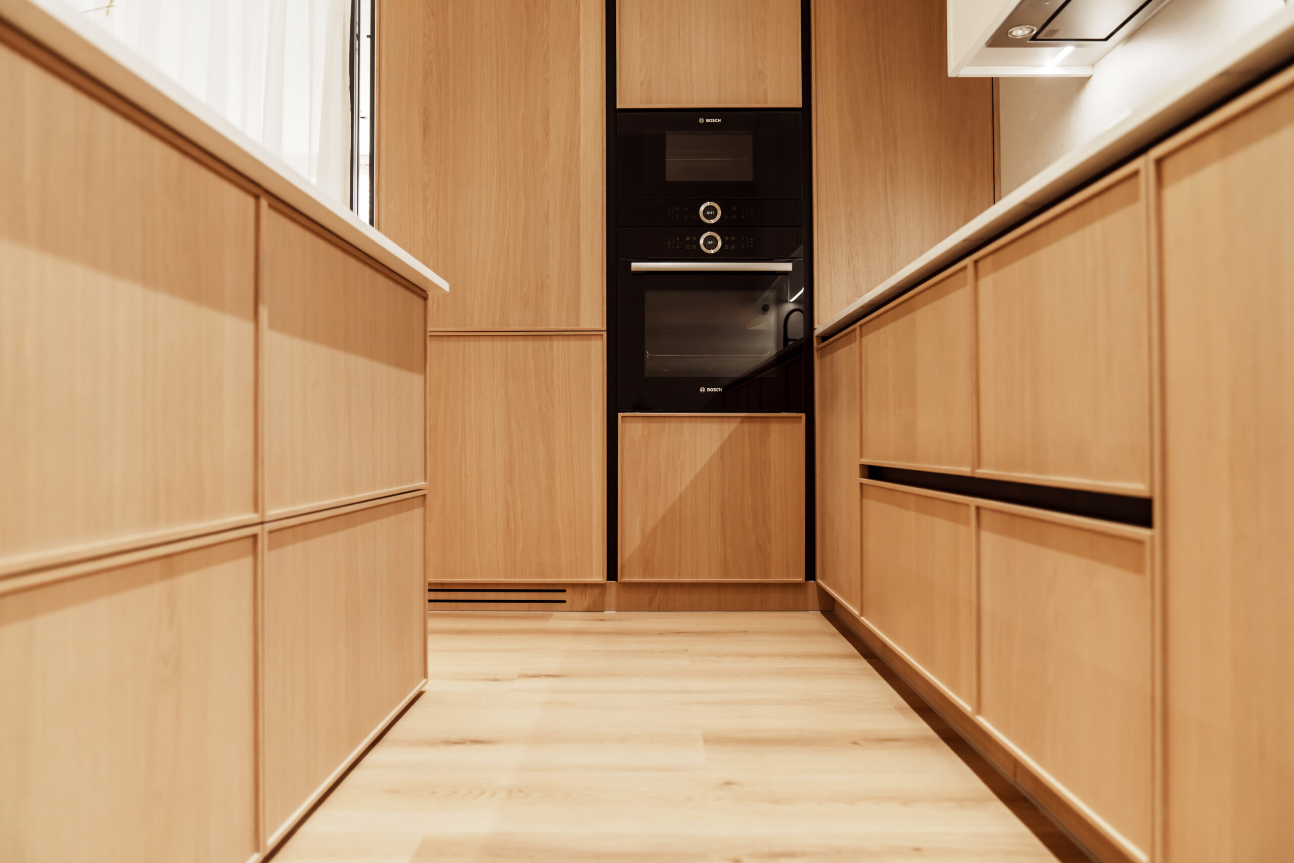 Acest proiect să îndeplinim visul clientului pentru o bucătărie modernă, spațioasă și fără detalii de prisos.